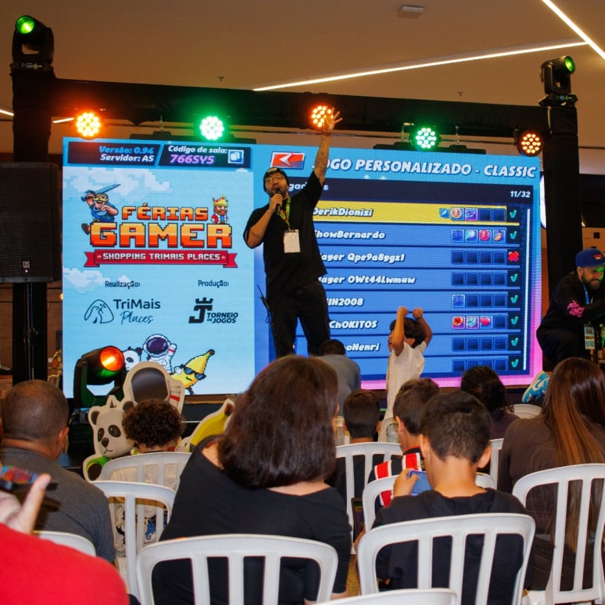 Divirta-se jogando em um telão direto no palco! Para participar, basta estar na plateia.