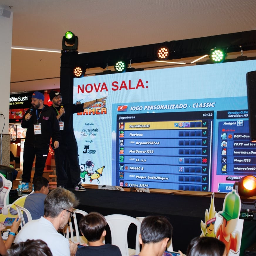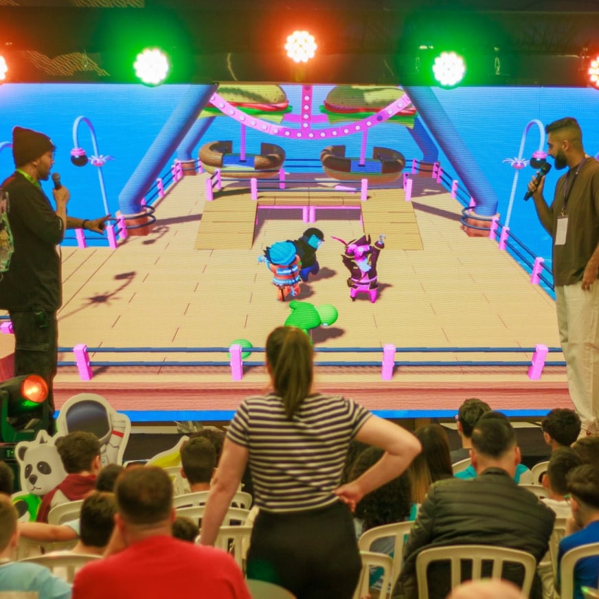 Divirta-se jogando em um telão direto no palco! Para participar, basta estar na plateia.